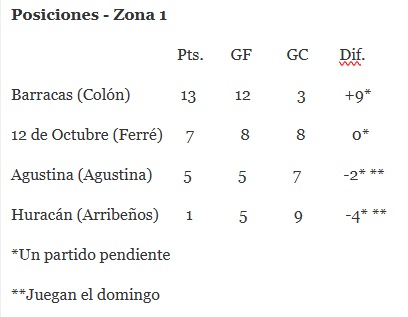12 de Octubre 0 – Barracas 3 (Juan Hernández, Román Ochoa y Aldo Almada)