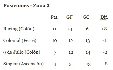 9 de Julio 2 (Jon Jaime 2) – Racing 2 (Franco Demarco 2)