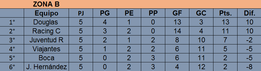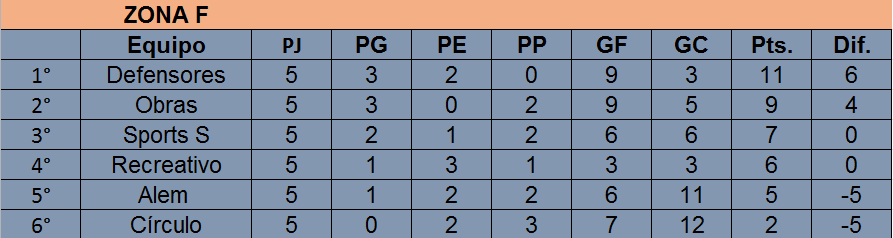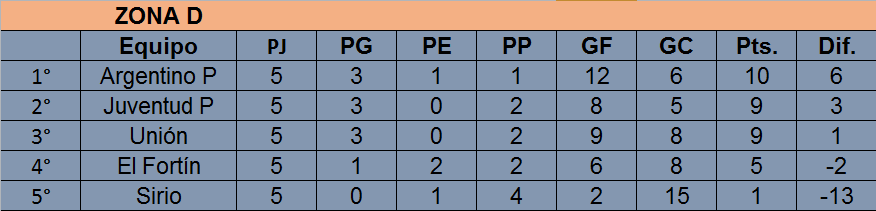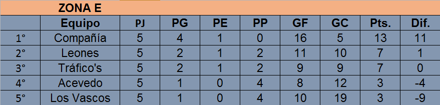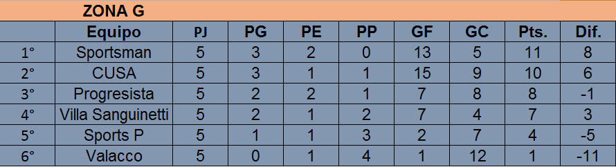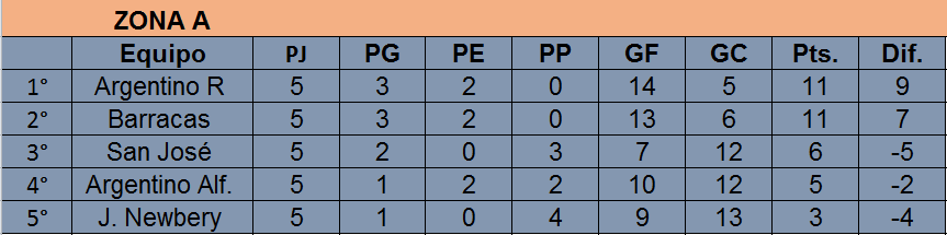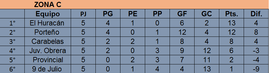 Tras las primeras cinco fechas, el único que no logró ganar es 9 de Julio (1 empate y 4 derrotas), mientras que el que mas partidos ganó es Porteño (4 triunfos y 1 derrota). Por su parte, Barracas y Racing se mantienen invictos: tanto el «Rojo» como la «Academia» acumulan lleva 3 triunfos y 2 empates.