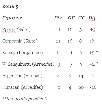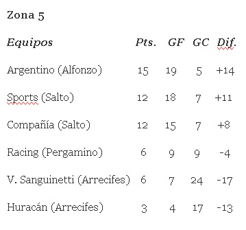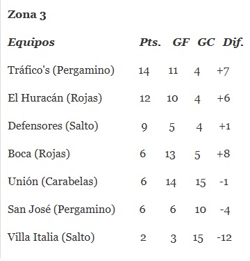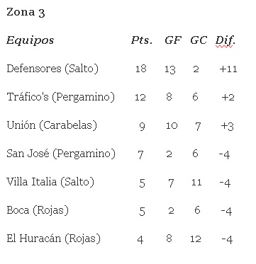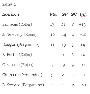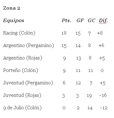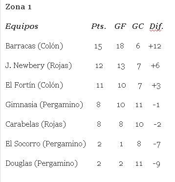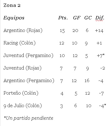 ESTADISTICAS FUTBOL LOCAL Tablas de posiciones en las zonas de los equipos colonenses del Torneo 6 Ligas